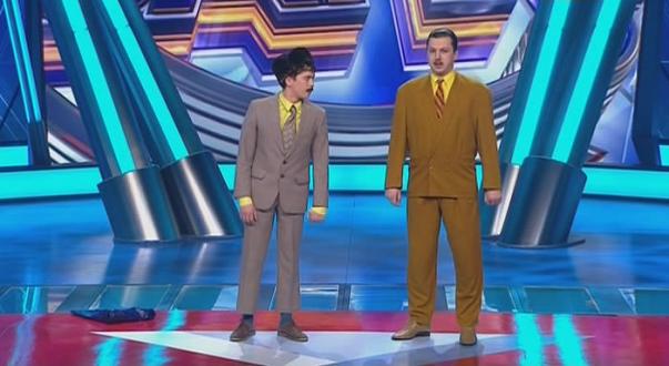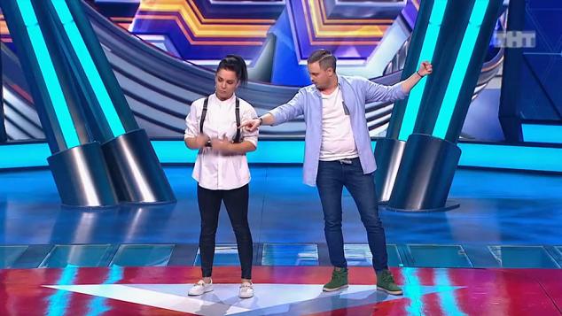 Елена Гордеева и Роман Постовалов показывают две миниатюры: Пьяная женщина срывает свидание на крыше и муж с женой в театре сидят на разных рядах.