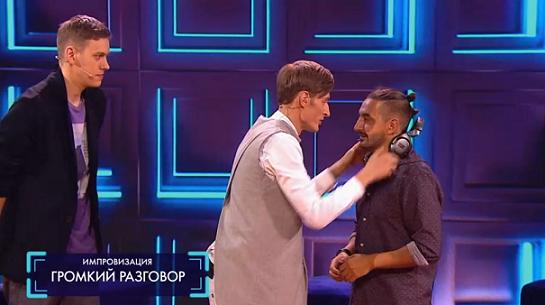 24.03.17 Сергей одевает наушники и читает по губам. Он догадывается, что говорит ему Антон. Антон играет роль царя, а Сергей - воеводы, который захватил не тот город.