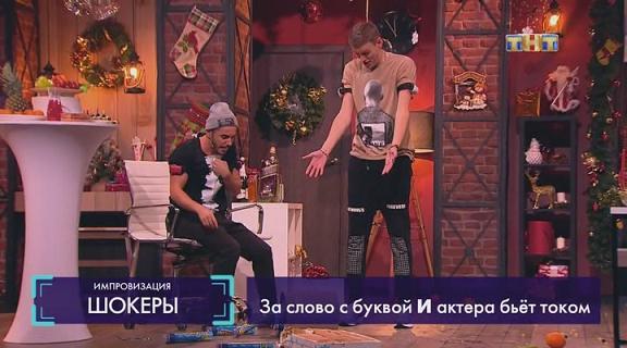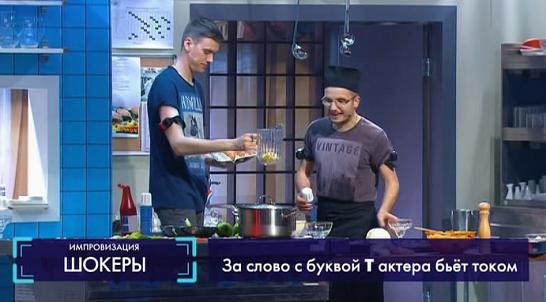 Арсений - шеф-повар учит Сергея готовить пиццу, а Павел Воля бьёт их током, когда те произносят слова с запрещённой буквой.