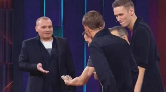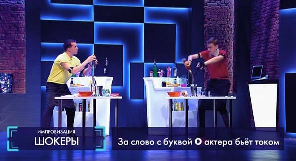 Нервный официант в ресторане обслуживает человека, который очень спешит. Тем временем Павел Воля бьёт током актёров за слово с буквой О.